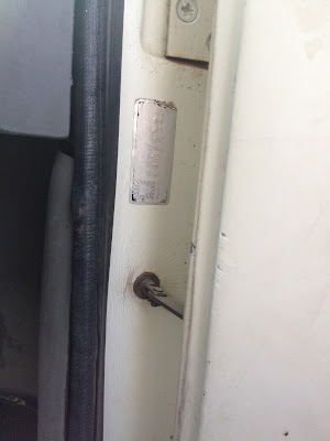 Esta plaqueta fica na coluna da porta do motorista.