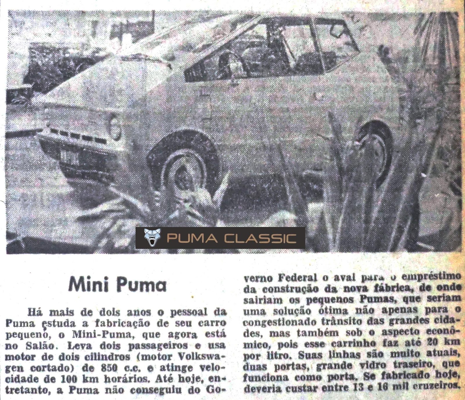 No dia 25 de novembro de 1974 no jornal diário "A Tribuna", da cidade de Santos-SP saiu um artigo mencionando o Mini-Puma presente no Salão do Automóvel daquele ano, há 42 anos. A descoberta foi do meu amigo Eduardo Rodrigues, jornalista de Santos.